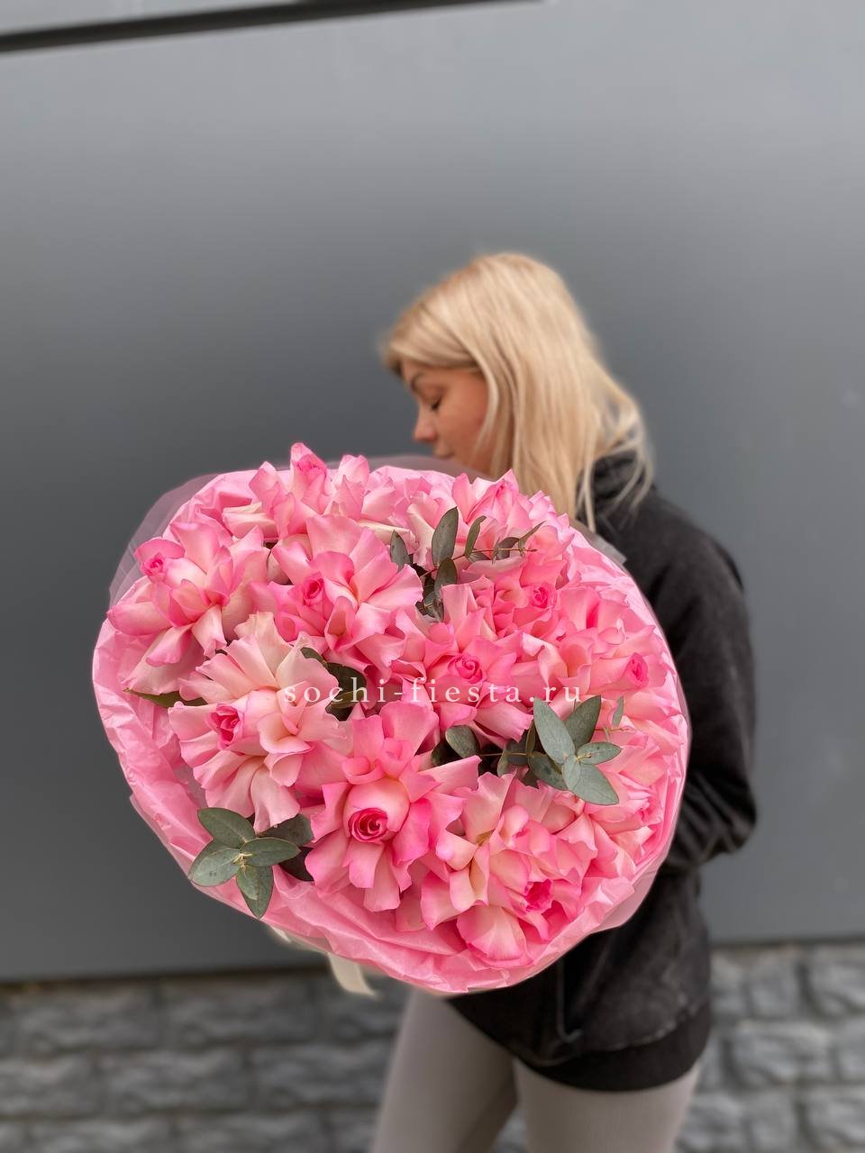 французские розовые розы в оформлении с эвкалиптом  На фото 11.