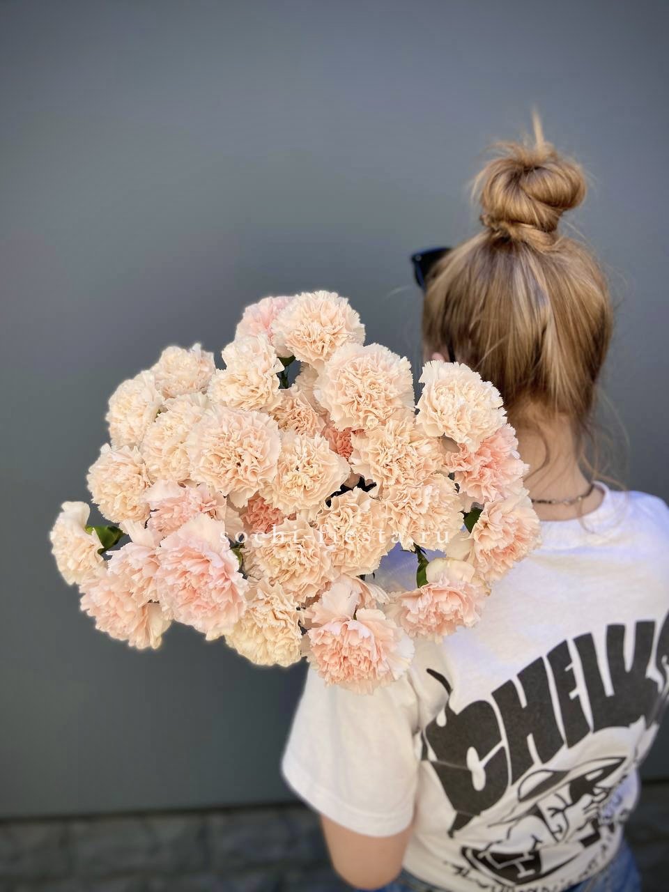 Пышные шапки диантусов выстраиваются в плотную охапку с выраженным объёмом. Множество мелких соцветий формирует воздушную текстуру и создаёт ощущение живого облака.