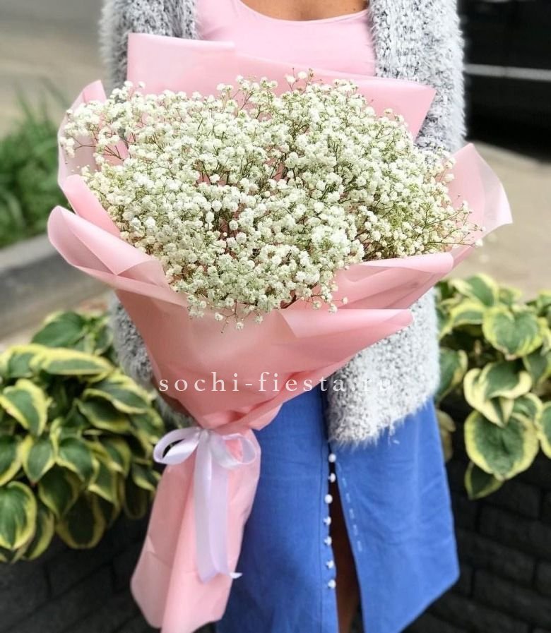 11 радужных голландских гипсофил, лента, комбинированная упаковка.