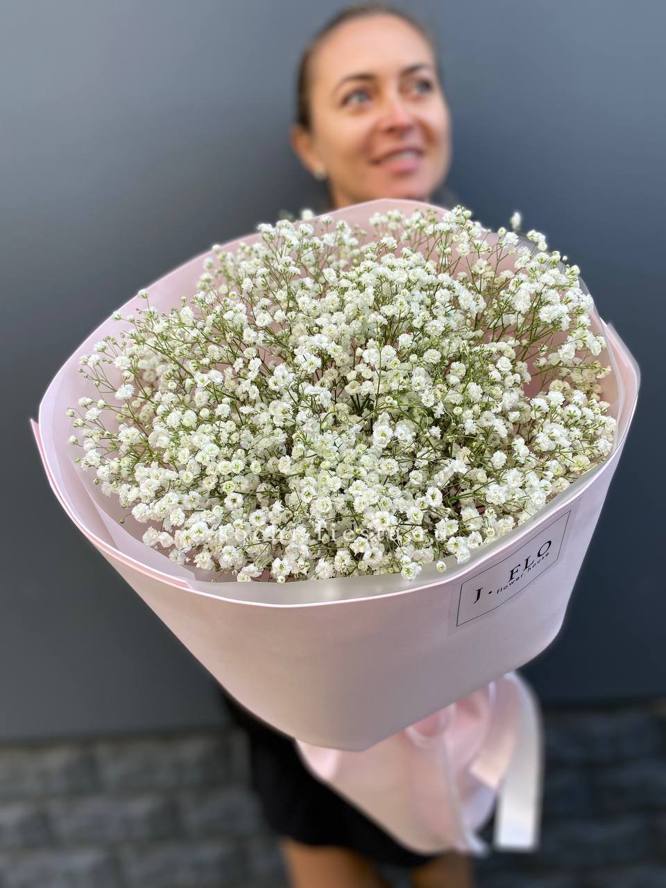 Одиннадцать ветвей радужной гипсофилы создают воздушное облако с переливами цвета. Яркая палитра и объёмная структура делают композицию заметной в любом пространстве.
