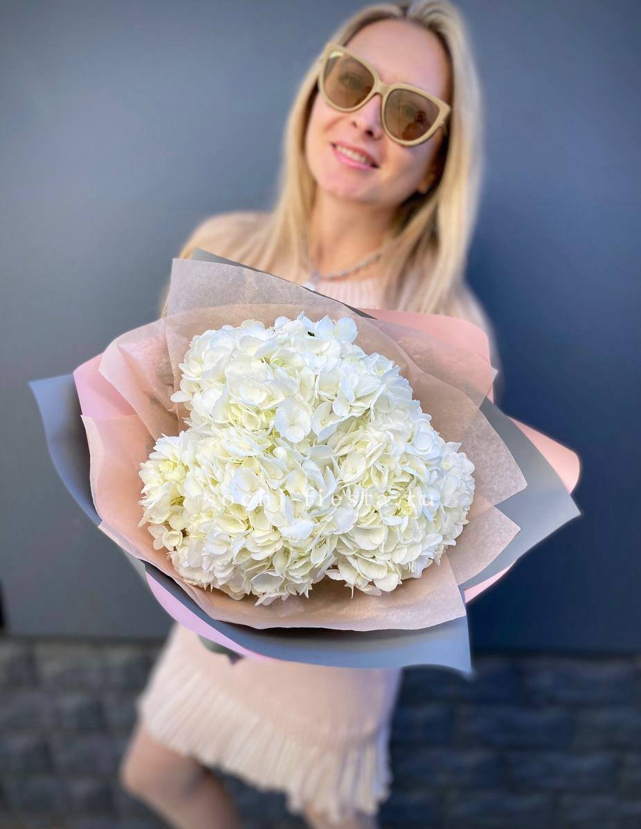Для заказа товара "Букет из трёх белых гортензий" с доставкой в Кемерово нажмите в корзину
