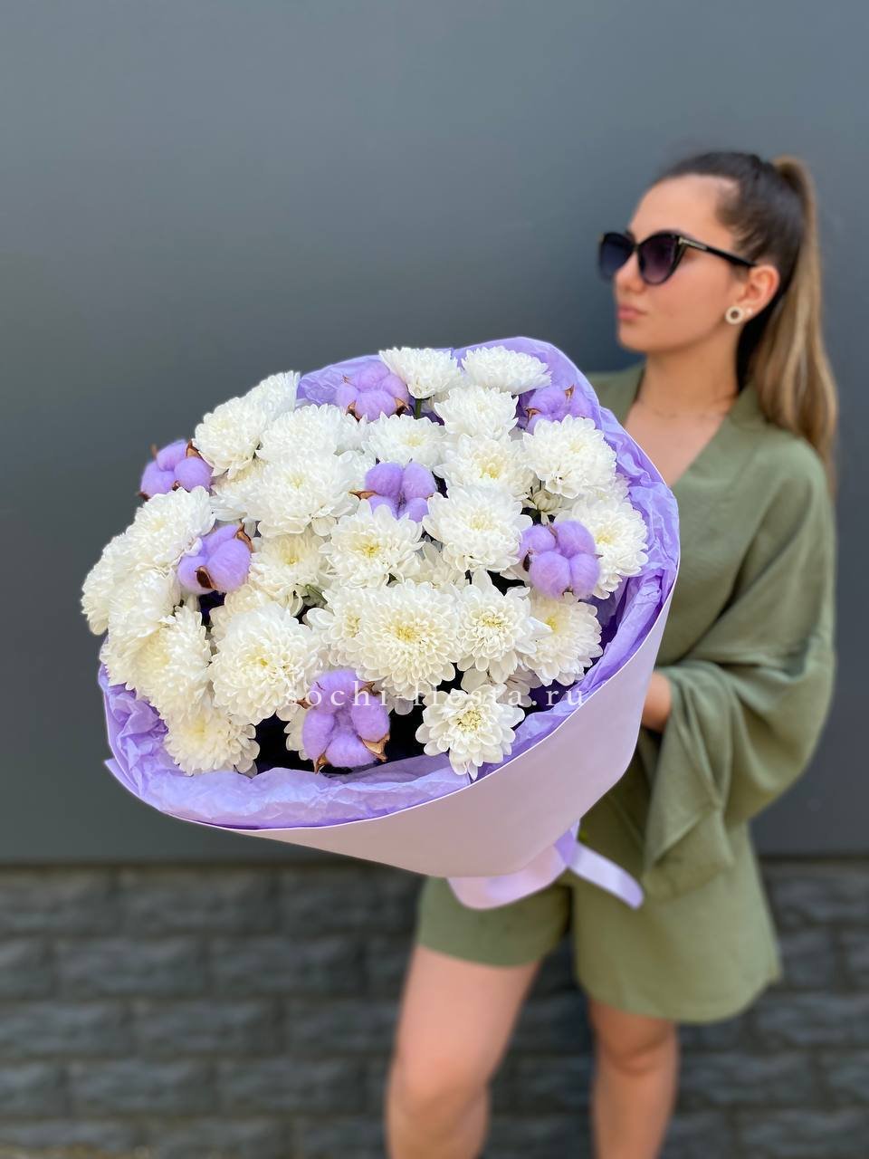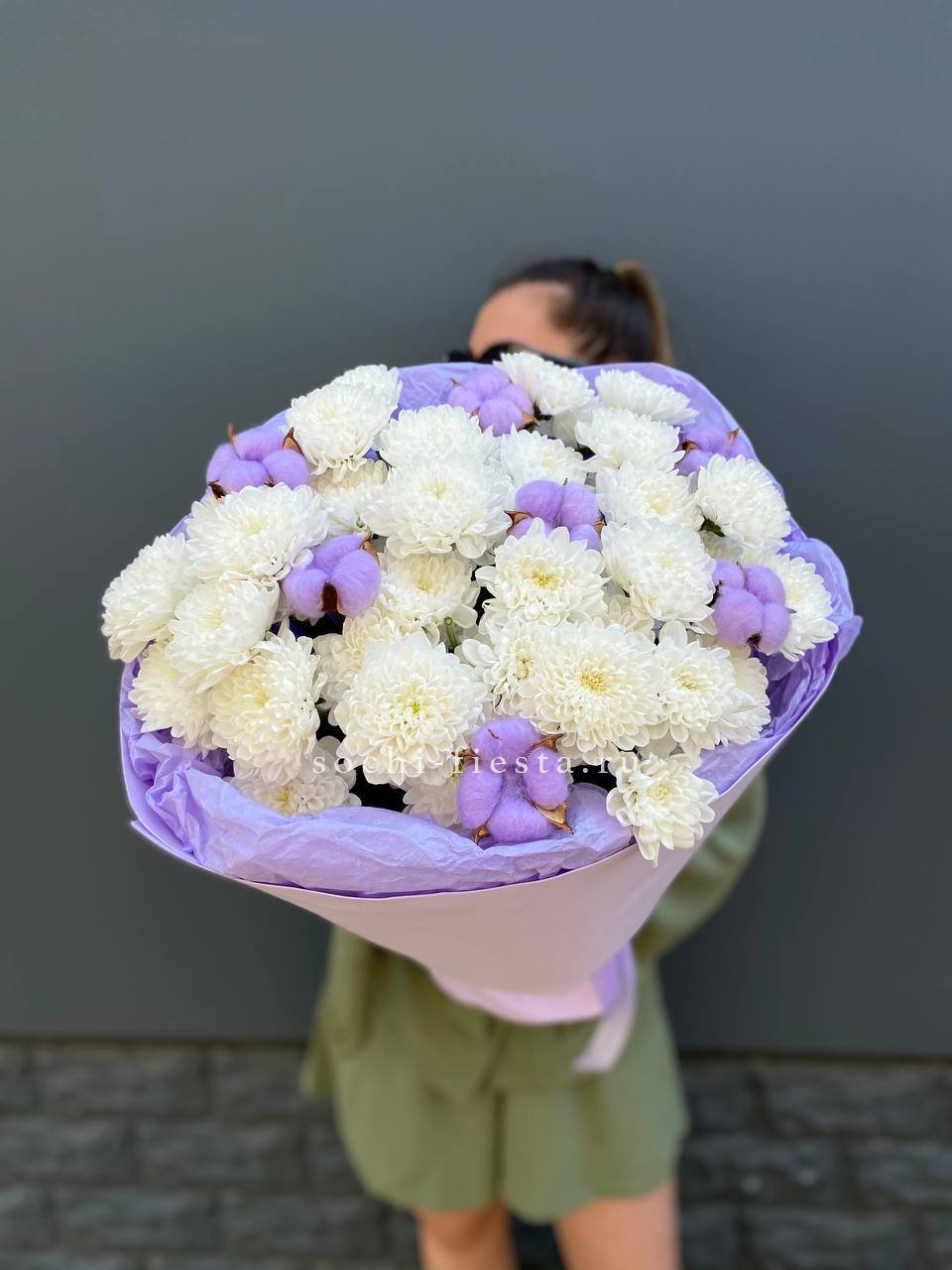 Для заказа товара " Букет хризантем и хлопка" с доставкой в Кемерово нажмите в корзину