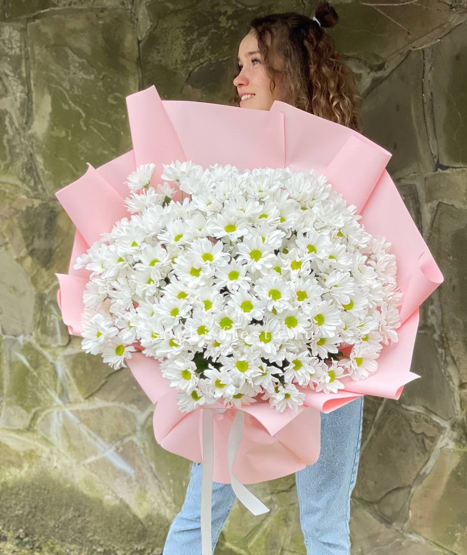 хризантема кустовая - 19 веток, лента, дизайнерская пленка.