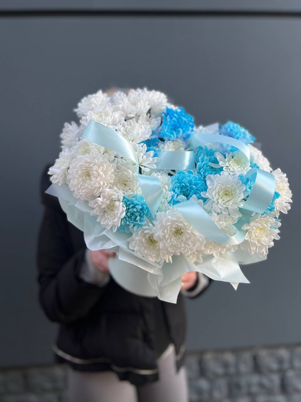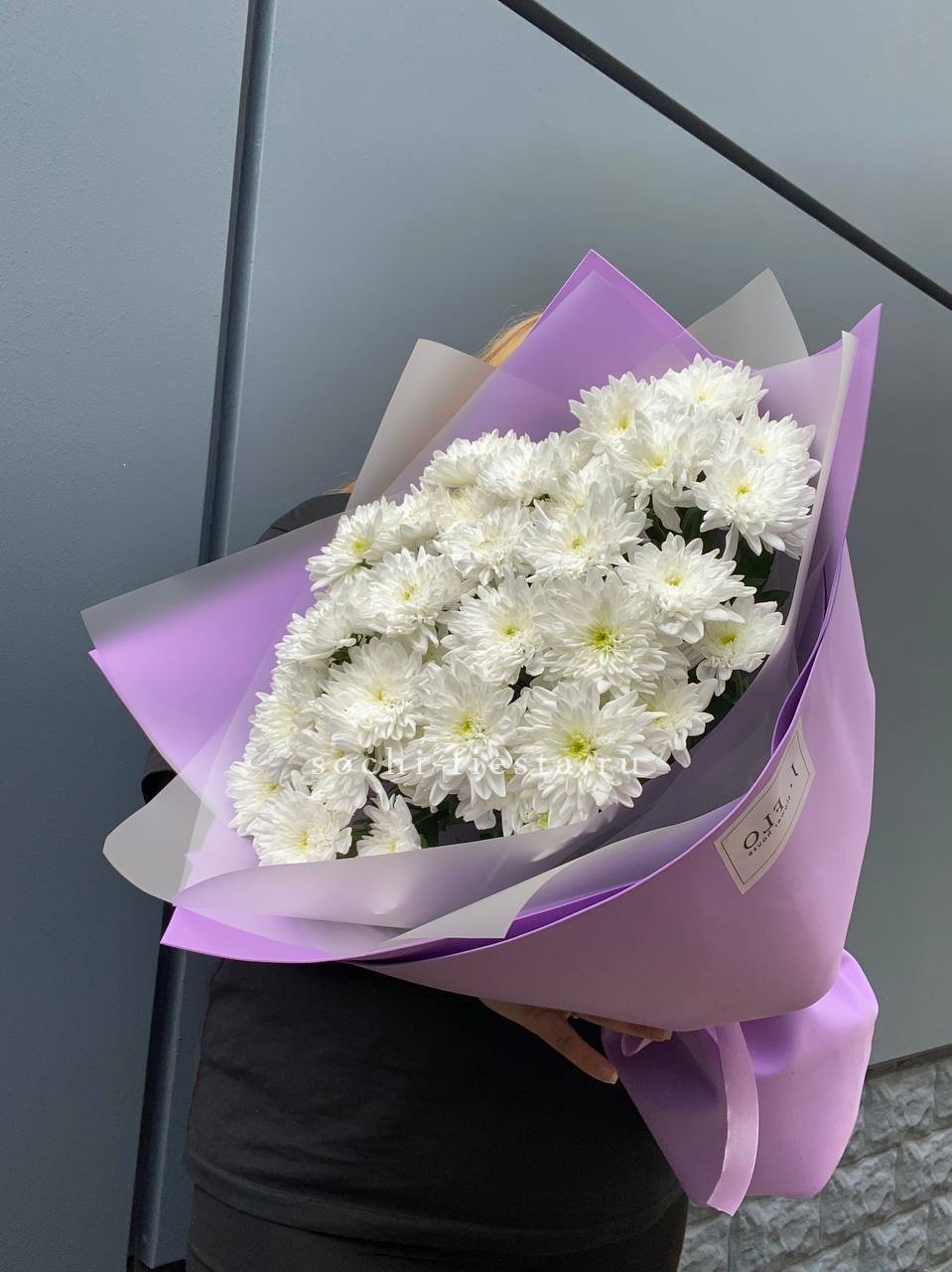 хризантема одноголовая - 9 шт., лента, дизайнерская упаковка.