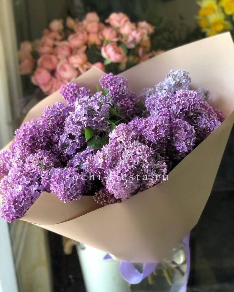 Семь веток душистой сирени в аккуратной сборке. Соцветия сохраняют свежесть несколько дней и легко размещаются в любой вазе благодаря продуманной форме.