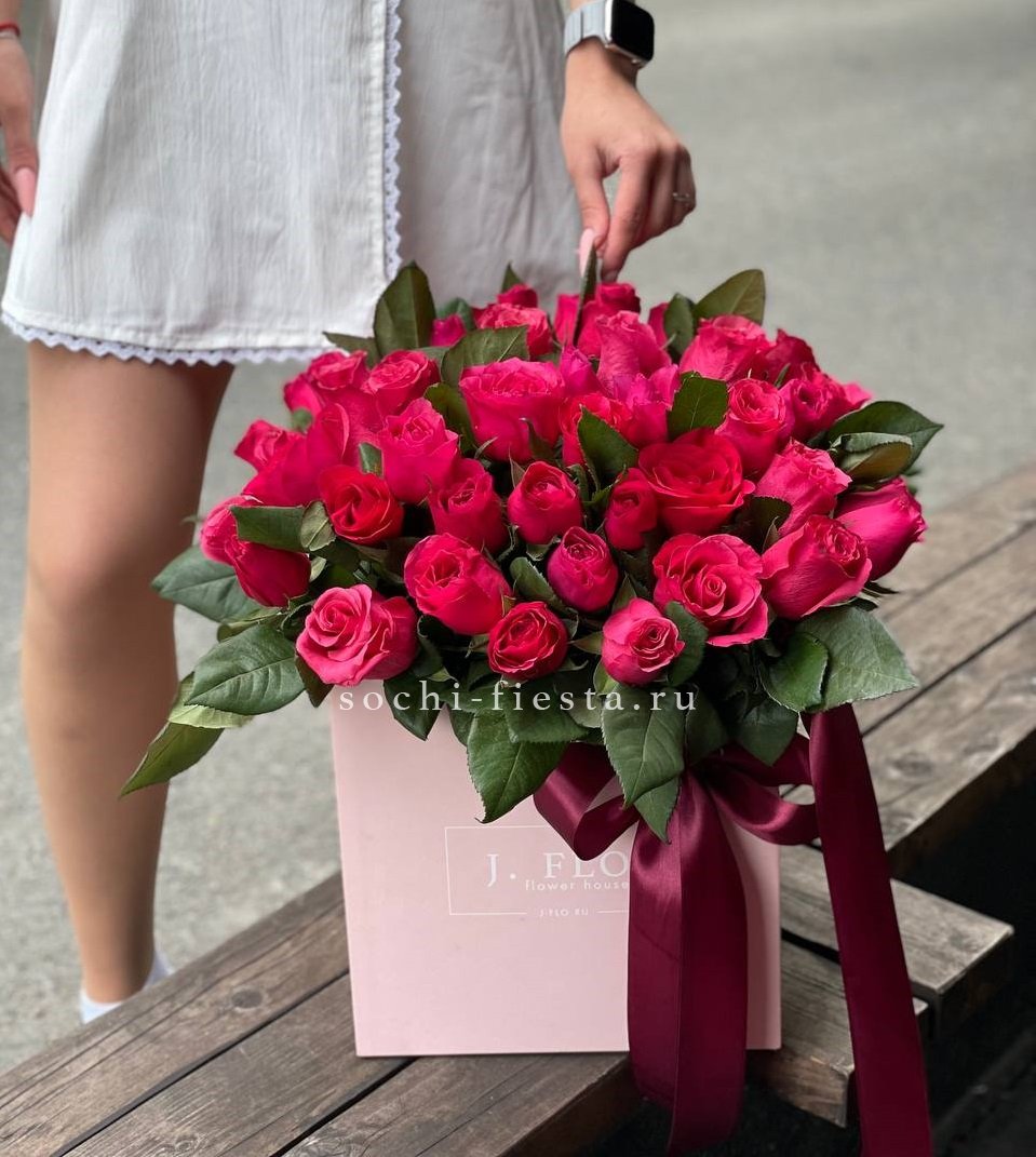 Для заказа товара "55 алых роз в кубе" с доставкой в Кемерово нажмите в корзину