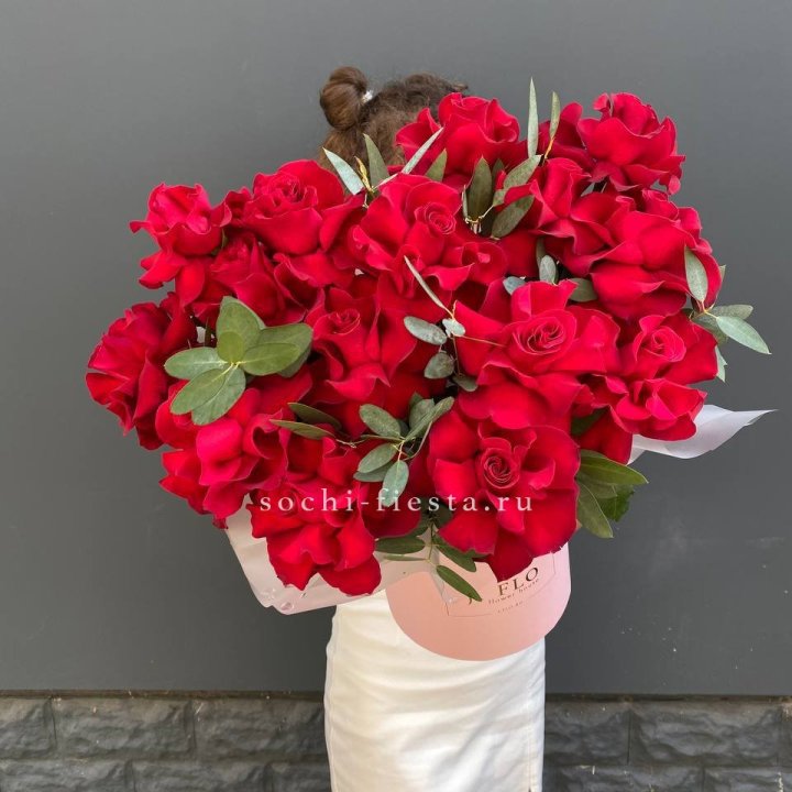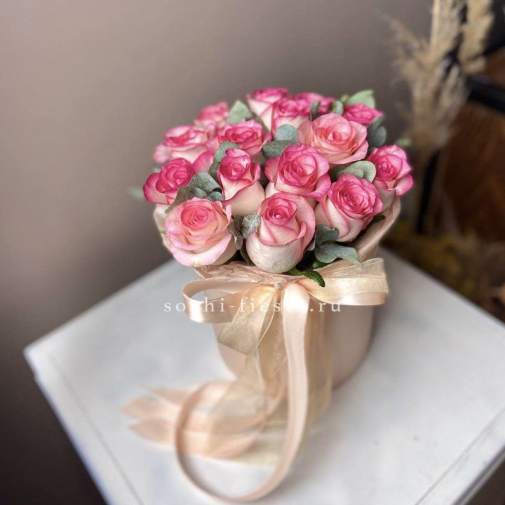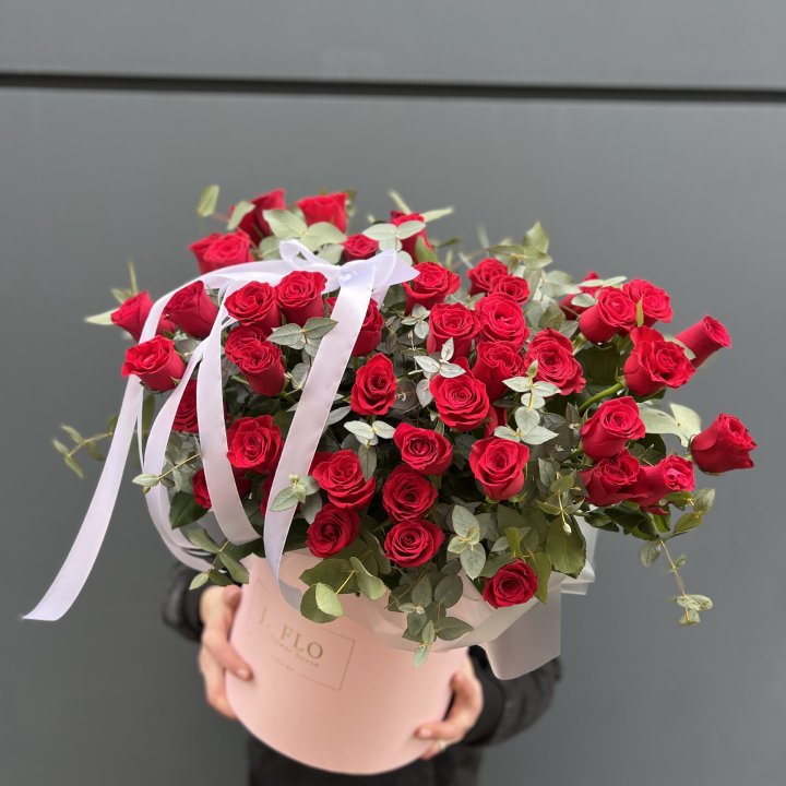 шляпная коробка с розами для студии флористики в Кемерово