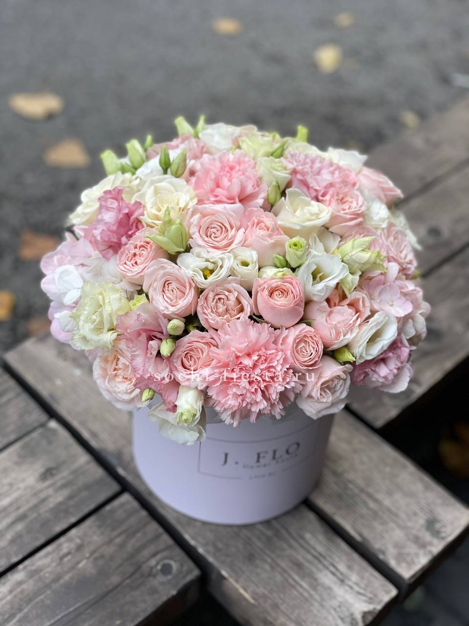 кустовая роза, лилия, диантус, лотос, эвкалипт, бокс 13.