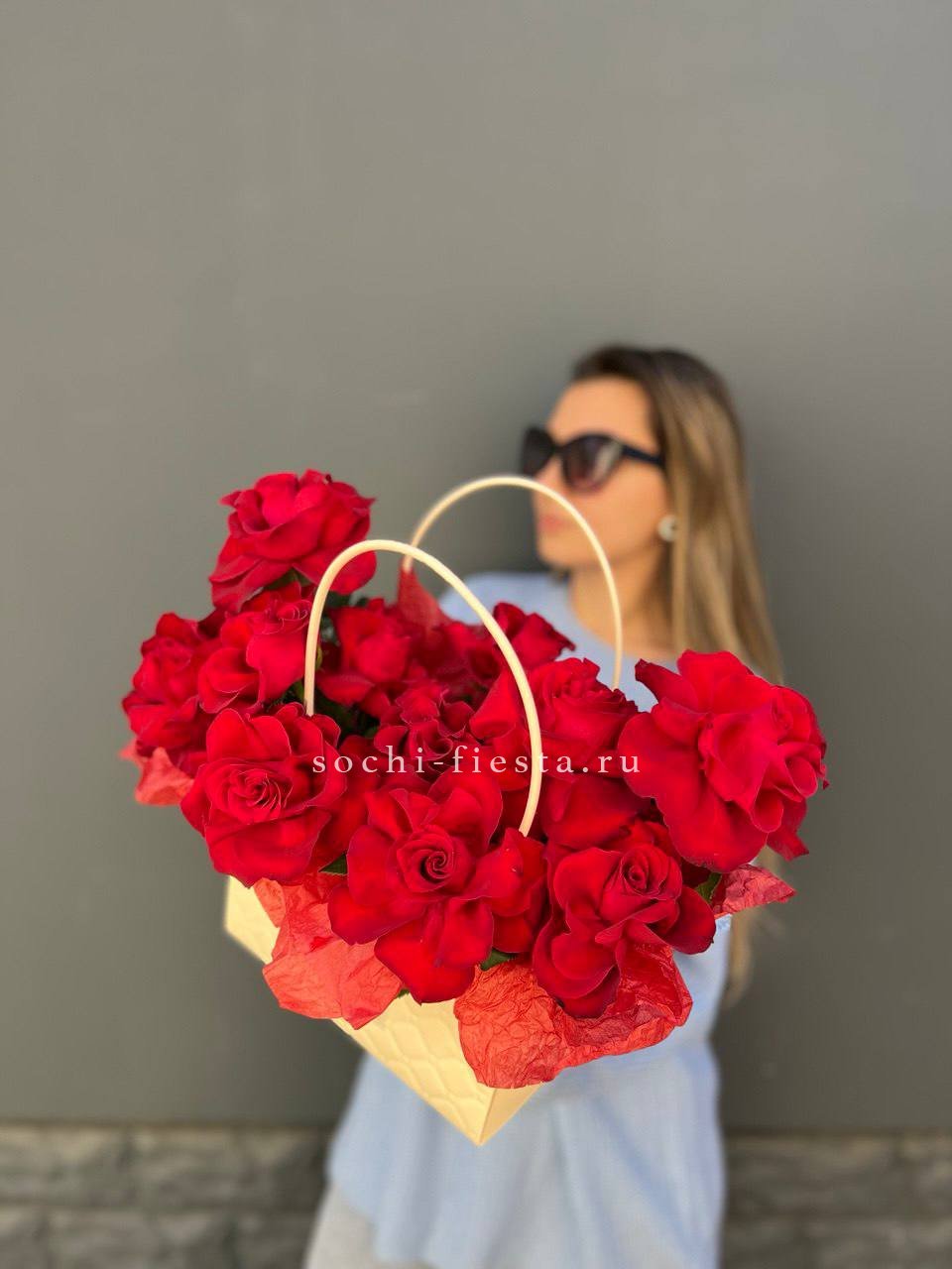 красные розы в сумочке.