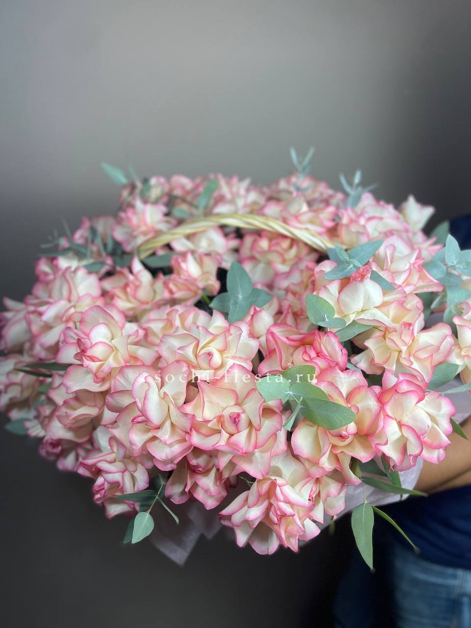 лилии в корзине с эвкалиптом На фото 23 шт.