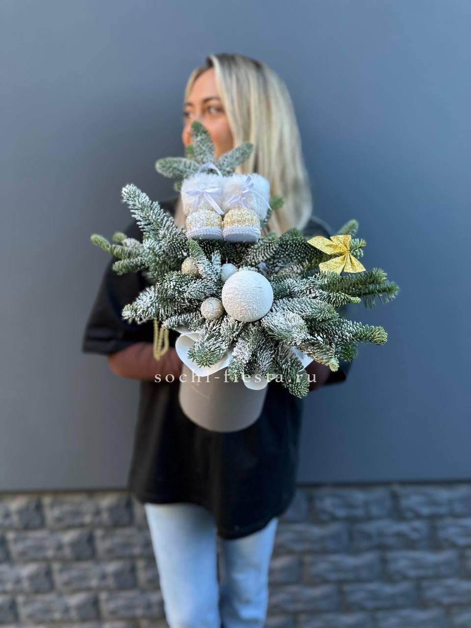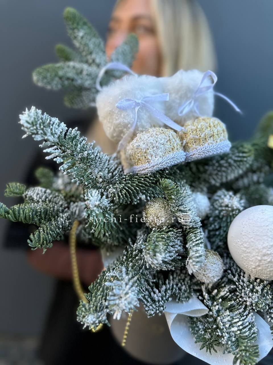 датский нобилис, сапожки, шары ВНИМАНИЕ! Готовая композиция (декор) может иметь незначительные внешние отличия от примера на фотографии.