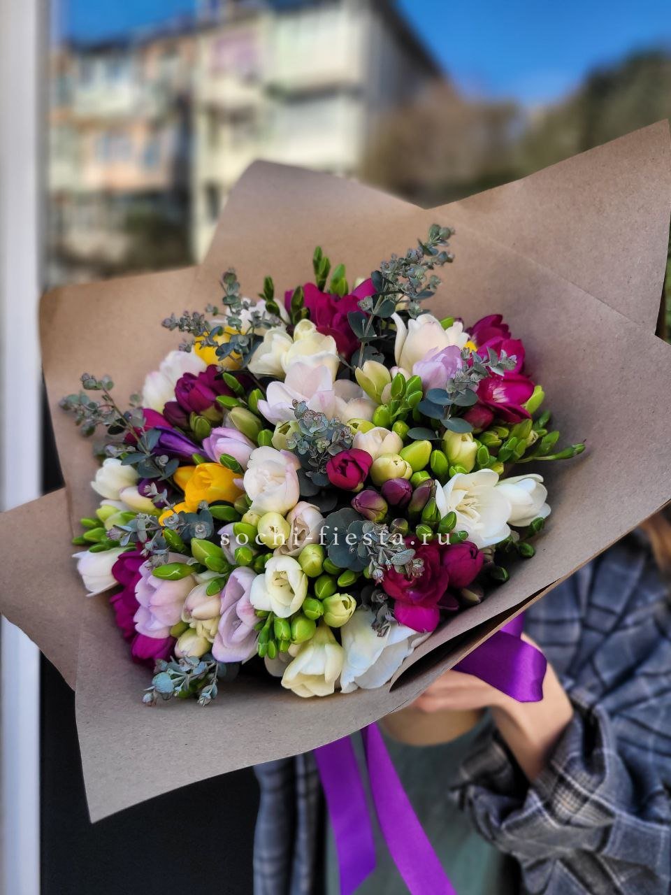 Состав: 29 фрезий, крафт, лента