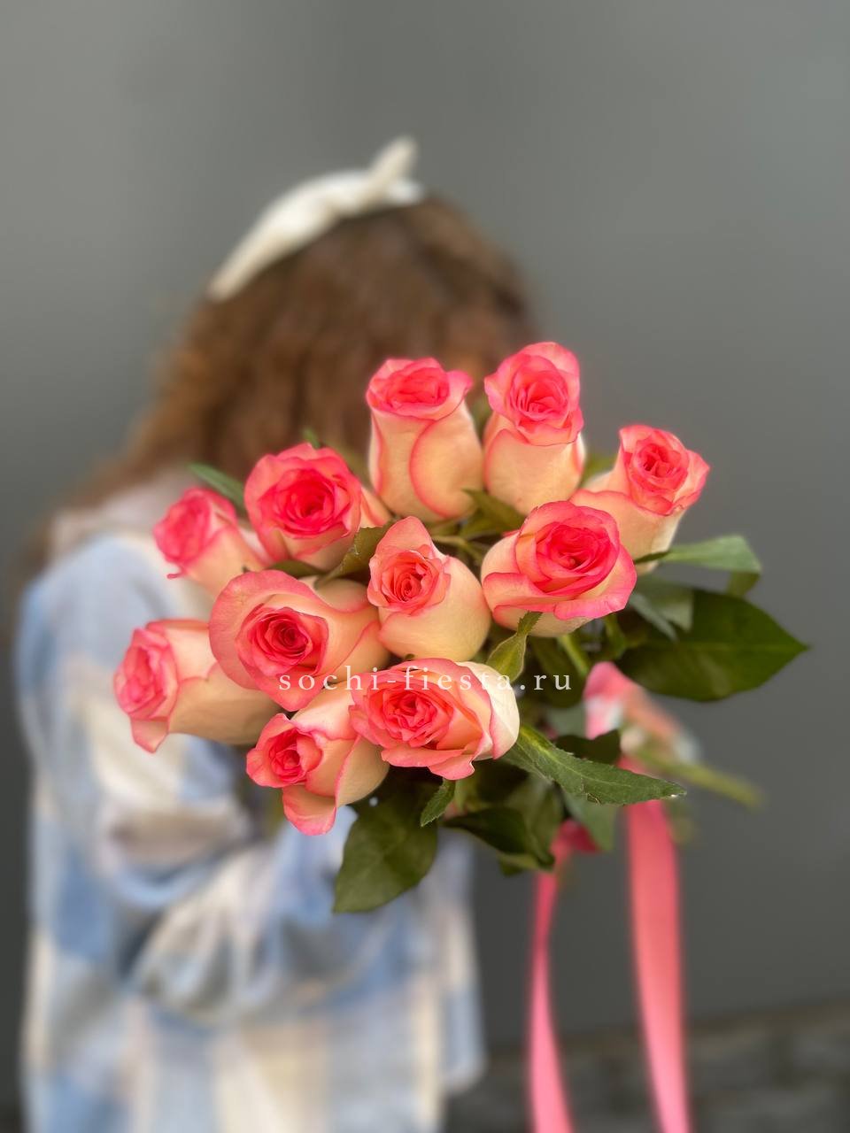 Состав букета на фотографии: розы Chapeau - 25 шт., лента, дизайнерская упаковка