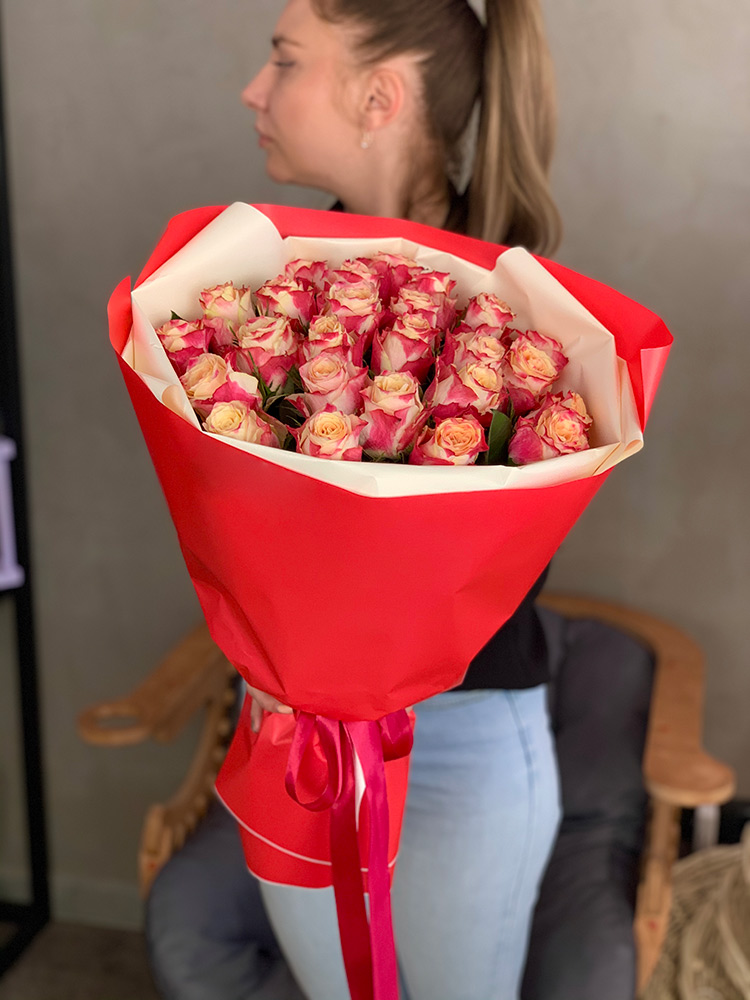 Мы работаем только со свежими цветами — букеты радуют от 7 до 14 дней и дольше при правильном уходе.