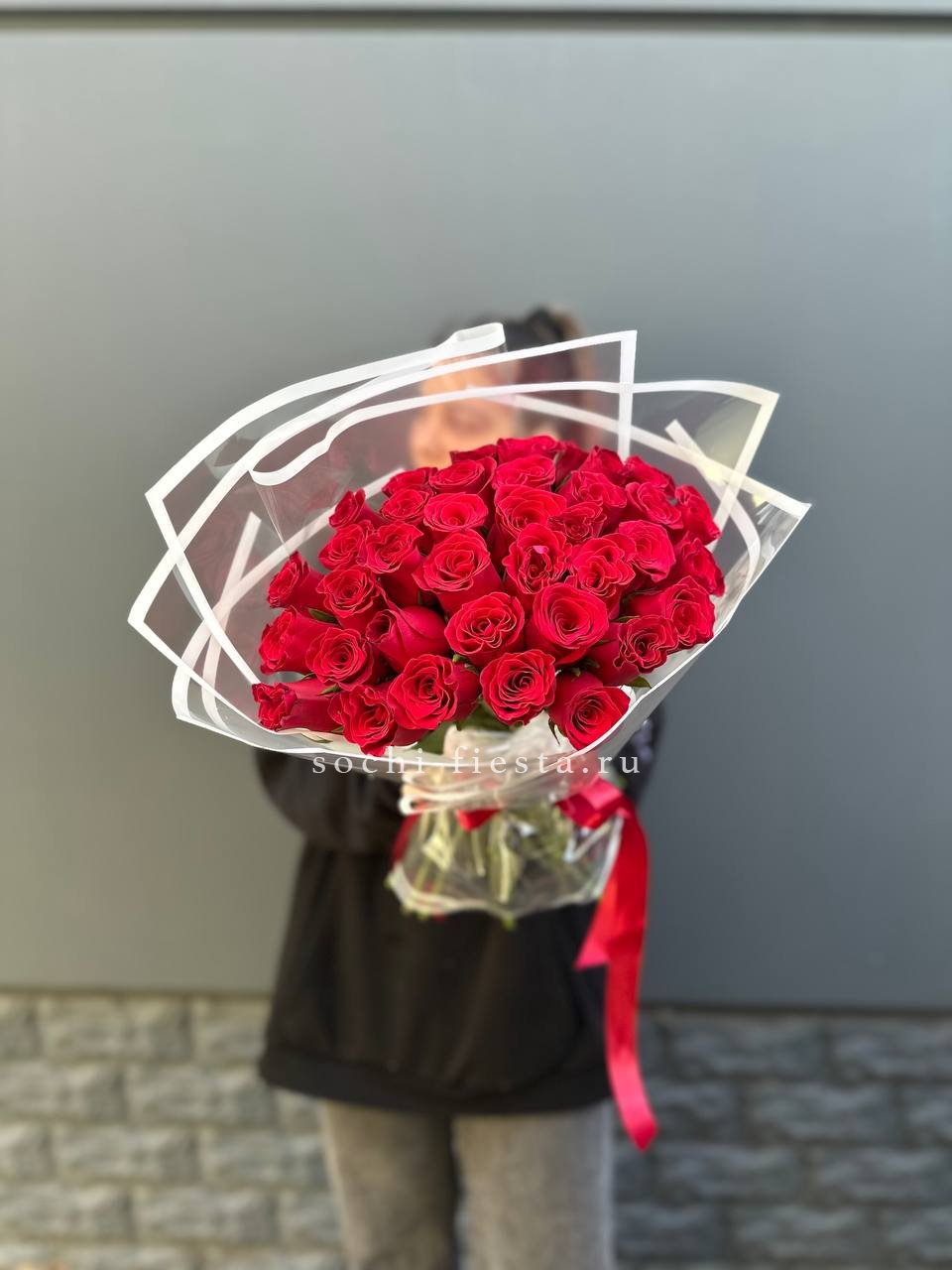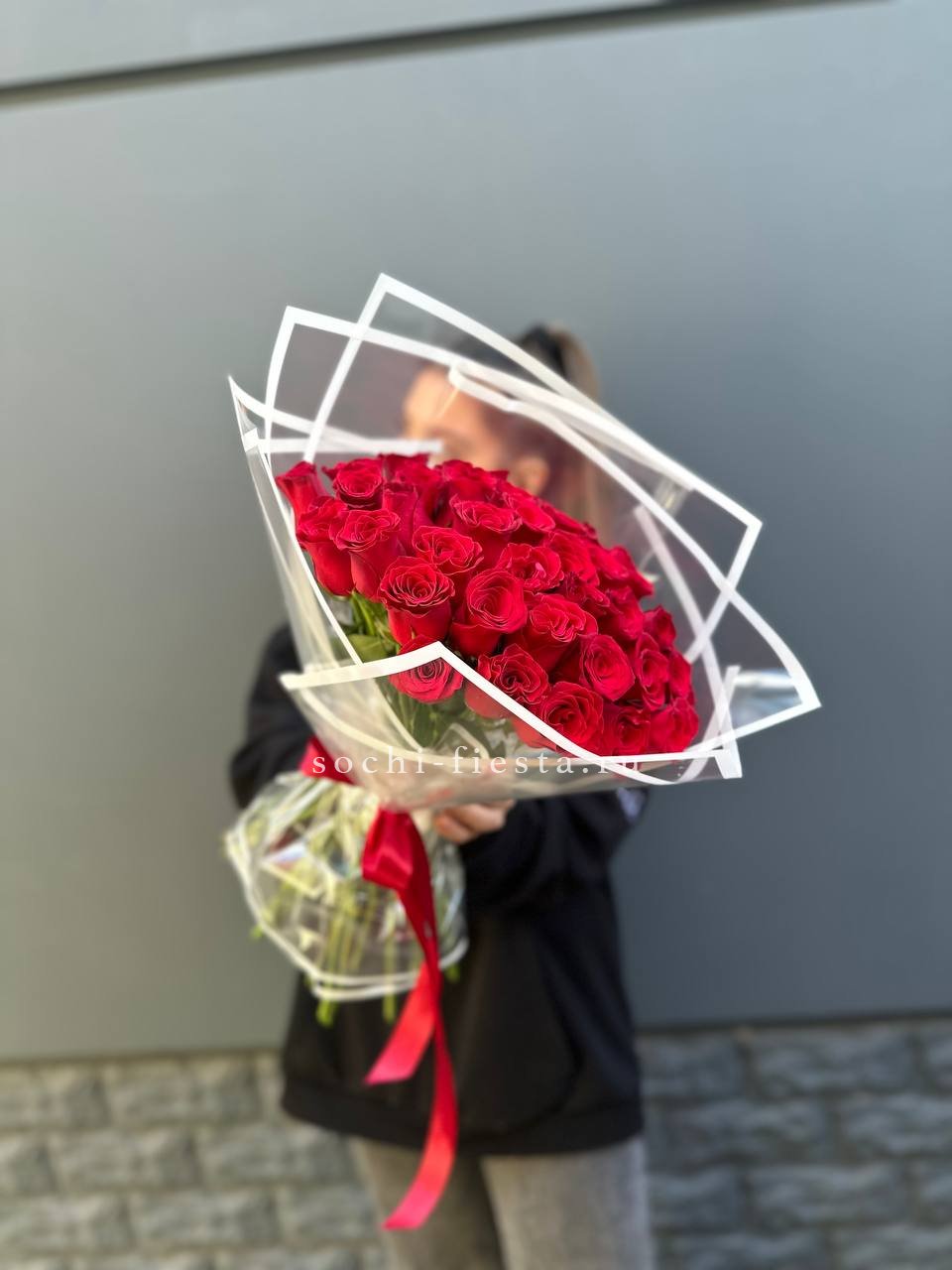 на выбор количество роз, лента На фото - 45шт.