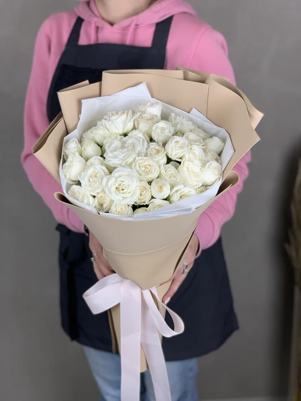 Пятнадцать веточек с множеством небольших бутонов формируют воздушную форму. Букет легко помещается в любую вазу и сохраняет свежесть долгое время благодаря природной стойкости кустовых сортов.