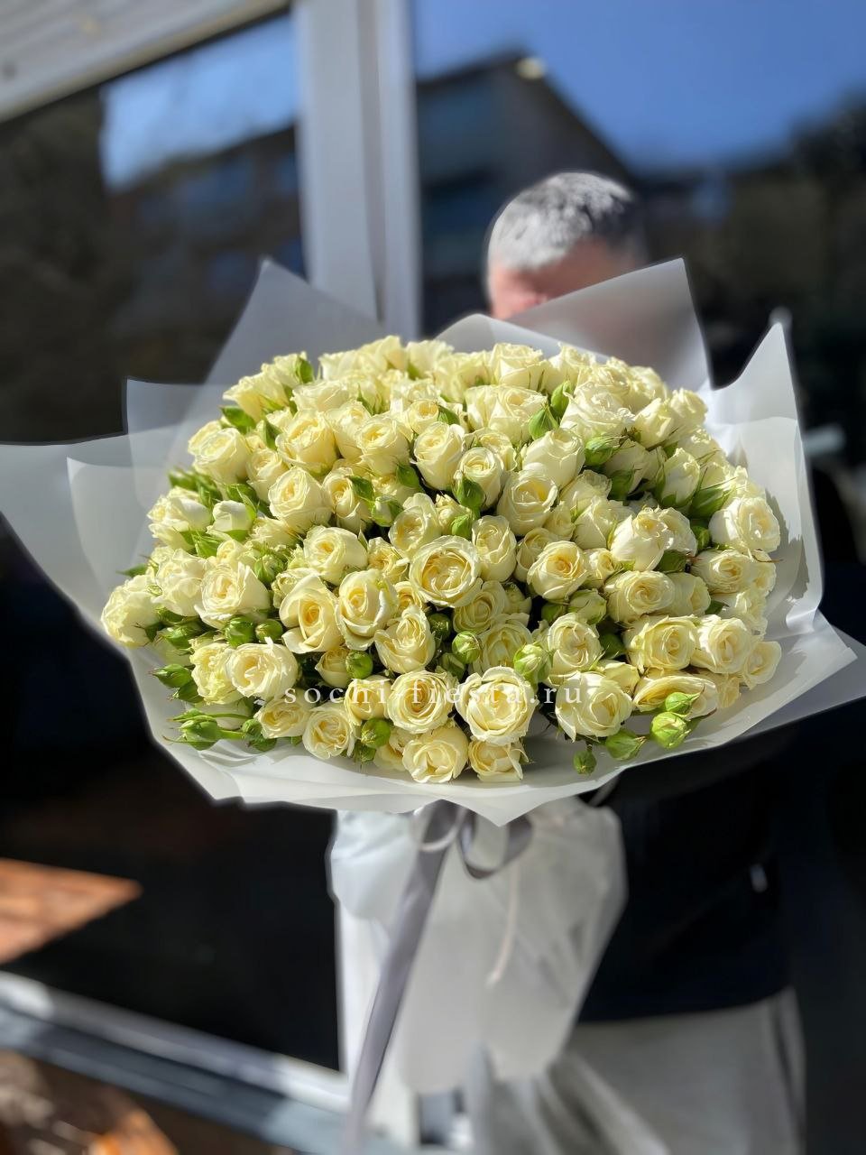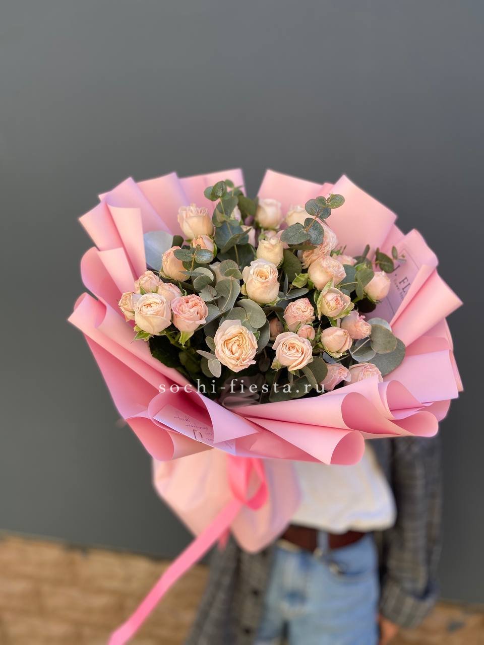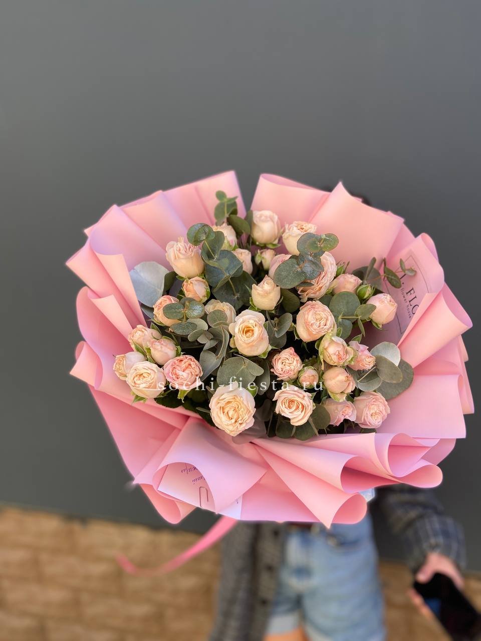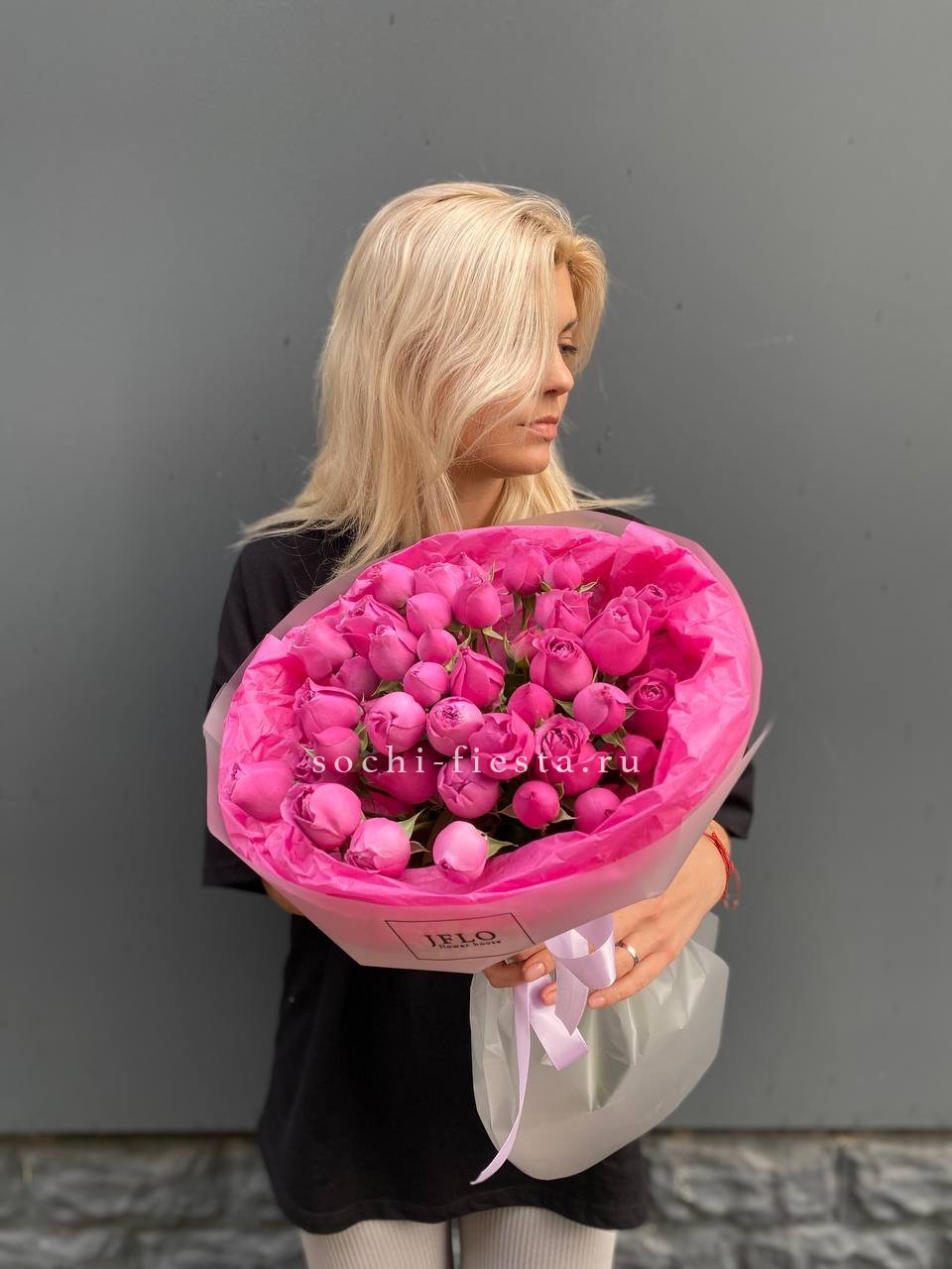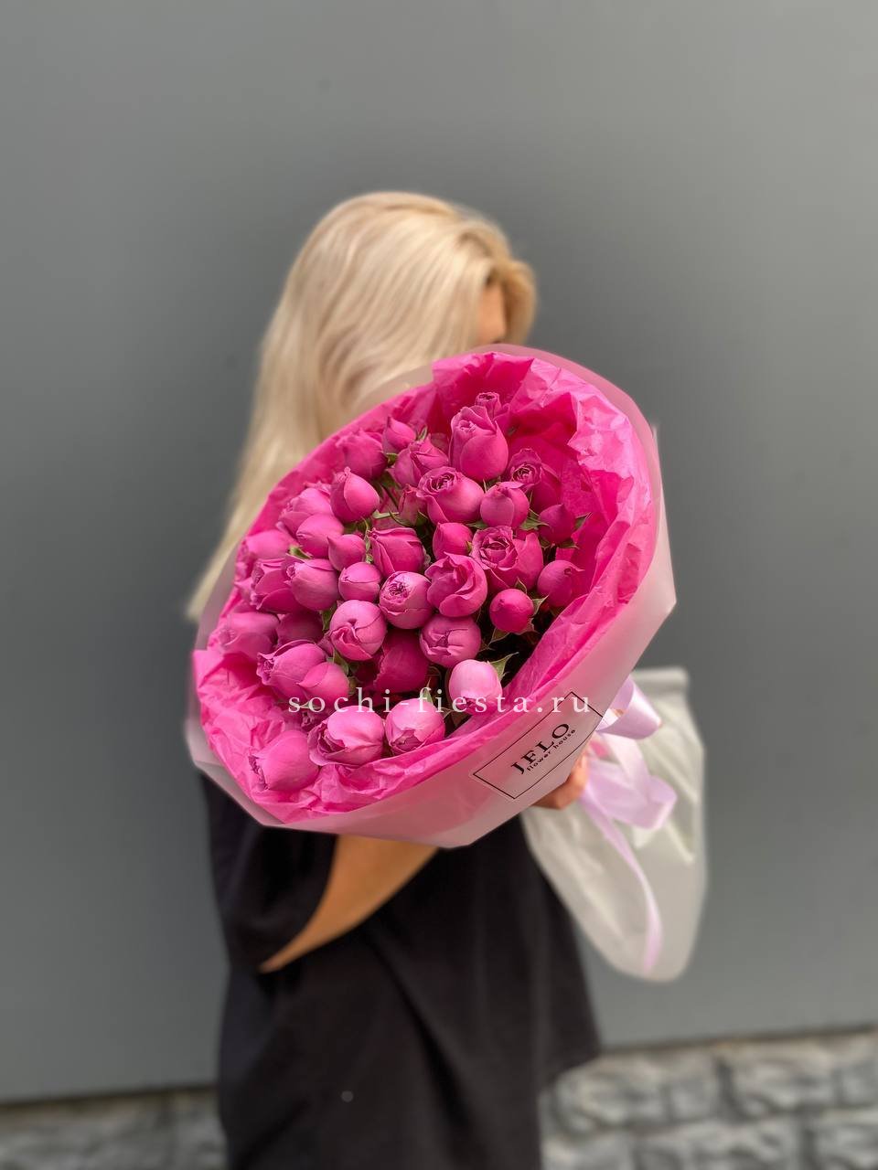 13 кустовых роз Bombastic, лента, дизайнерская упаковка.